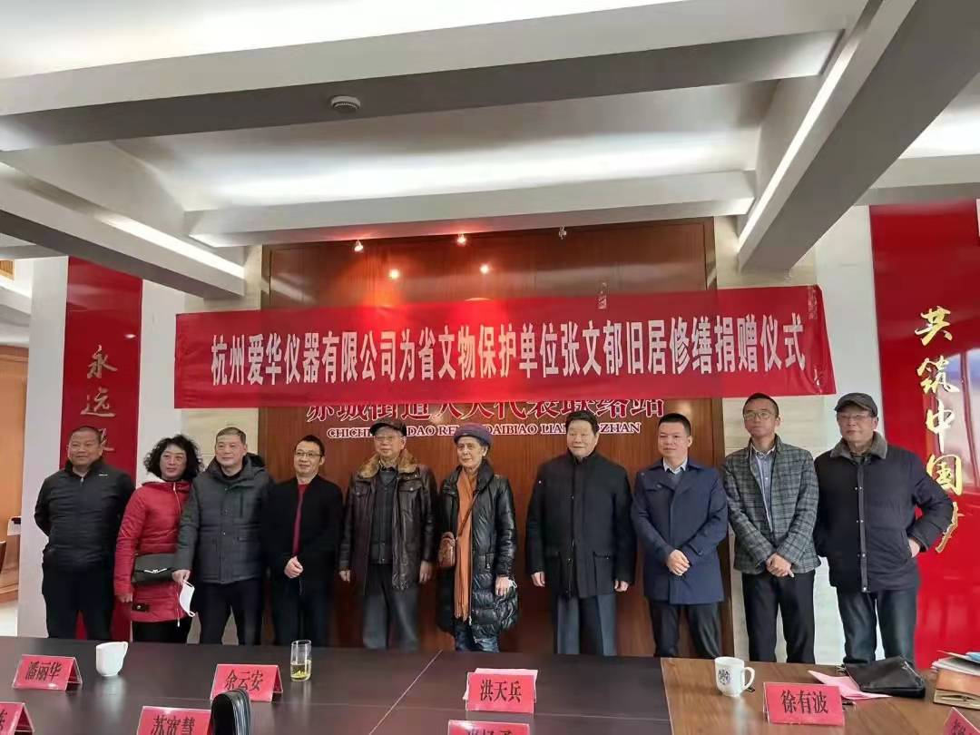 12月14日上午,“杭州PA捕鱼仪器有限公司为省文物保护单位张文郁旧居修缮”捐赠仪式在天台县赤城街道办事处四楼会议室举行。天台县原人大副主任余云安先生,天台县人民政府赤城街道办事处主任洪天兵先生,天台县红十字会党组成员潘丽华女士,天台县文化和广电旅游体育局副局长徐有波,天台县人民政府赤城街道办事处宣传委员茅蔚,以及其他社会各界人士,业主代表出席了捐赠仪式。