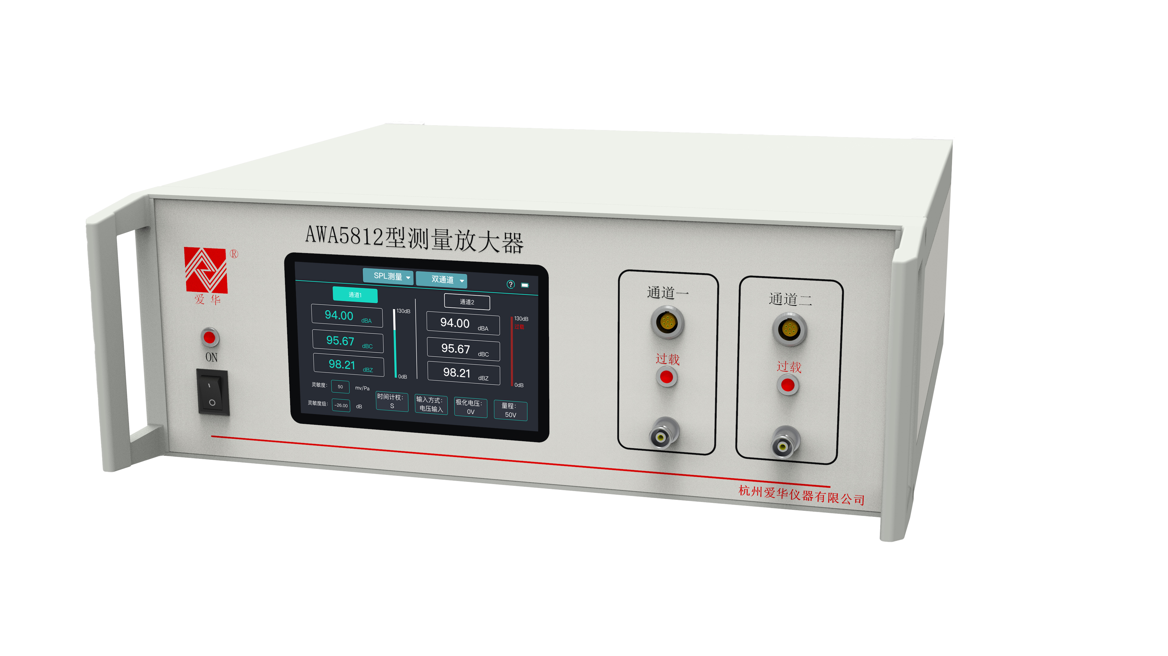 AWA5812型测量放大器是我公司最新研制成功,采用数字信号处理技术的通用型实验室声学测量仪器,具有多功能、双通道输入、动态范围大、精度高、稳定性好、操作简单等优点。可同时测量两个通道的交流电压、计权声压级等多项指标,还具有FFT分析、1/1 倍频程和1/3 倍频程滤波器分析等功能。集交流数字电压表、精密声级计、FFT分析仪、1/1倍频程和1/3倍频程分析仪等多种功能于一体。另外,仪器配备5寸带触摸功能的彩色显示屏,屏幕分辨率为800×480,能实时显示多种测量结果,用户可通过触摸屏对仪器进行操作,使用简单方便。